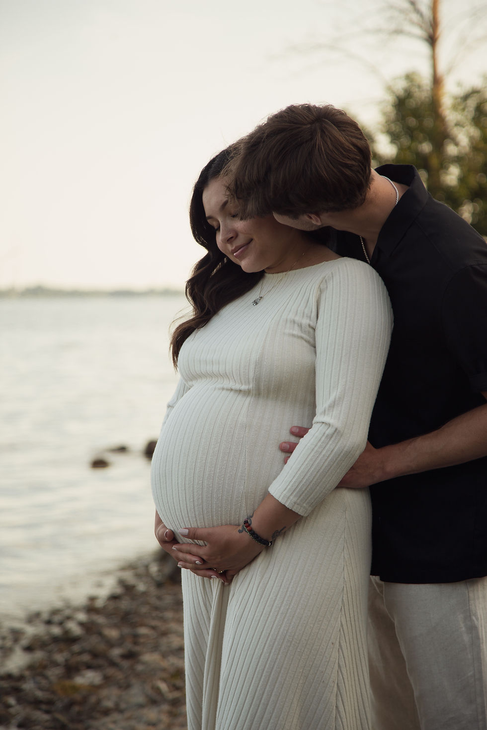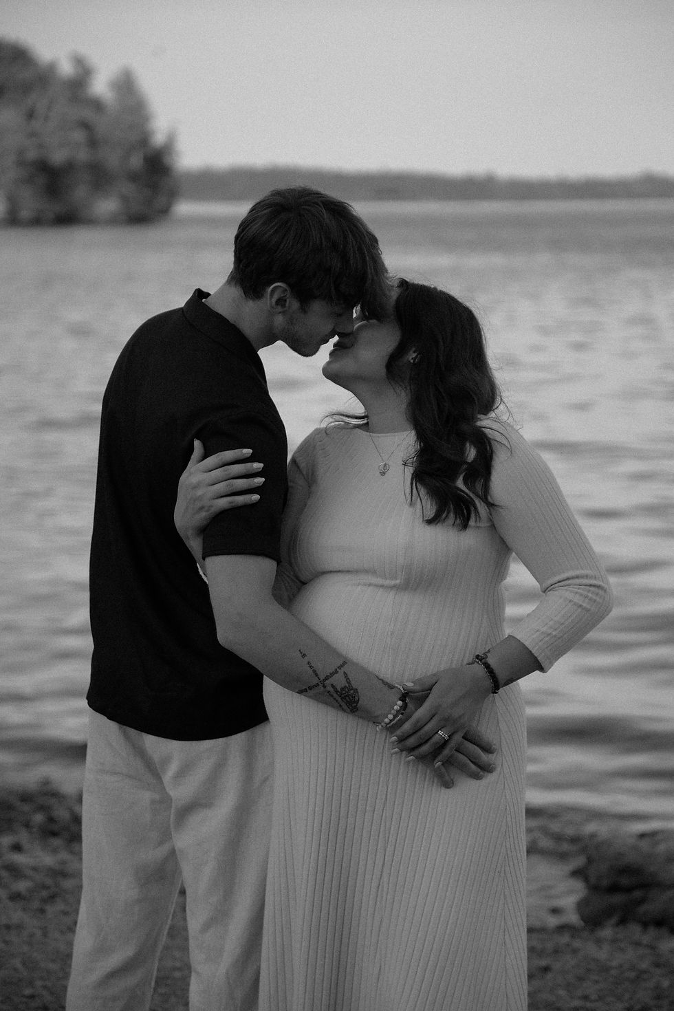 We chose Fairfield Historic Park for their maternity session — one of my favourite locations in the Kingston area. The open lake views, tall grasses, and quiet shoreline make it the perfect setting for couples who want something peaceful and romantic without feeling staged.